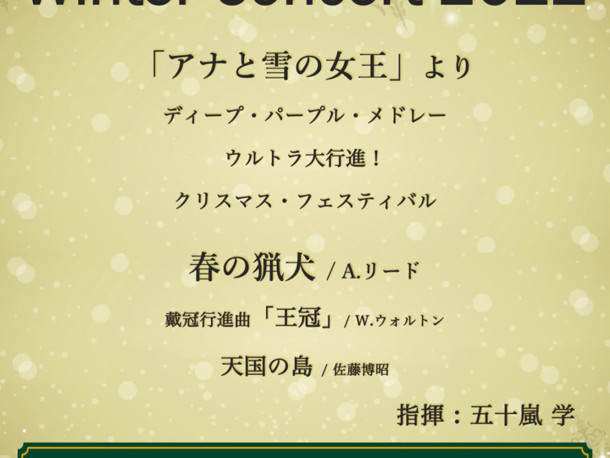 日時2022年10月30日(日) 15:30 ~ 16:00会場松沢小学校京王線 下高井戸駅 徒歩2分東急世田谷線 下高井戸駅 徒歩1分主催下高井戸商店街振興組合曲目鎌倉殿の13人 E.コールキャラバンの到着(サックス4重奏) 津崎知之千と千尋の神隠し(木管5重奏) 溝口佳洋展覧会の絵 M.P.ムソルグスキー聖者の行進入場料無料